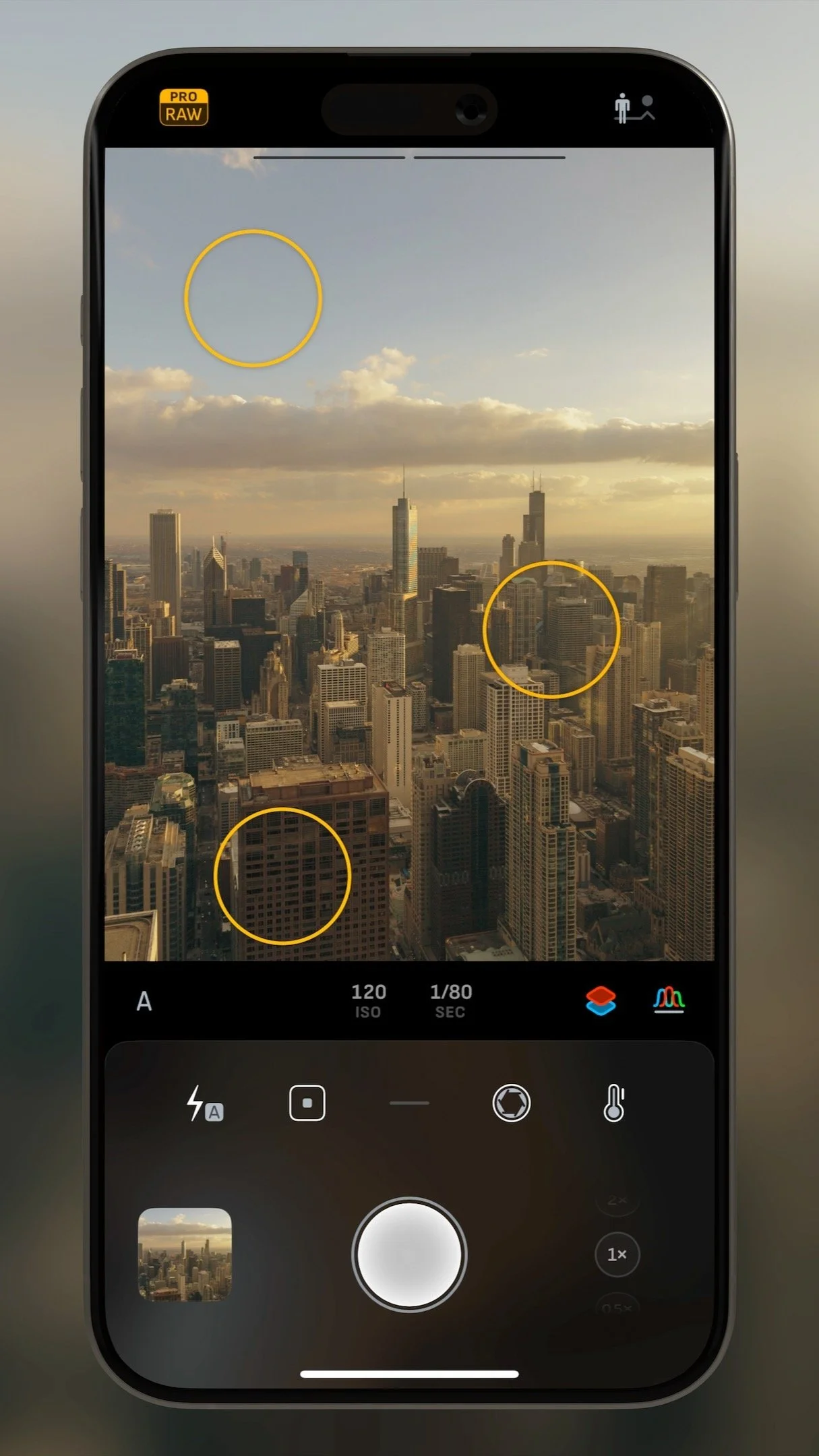 Capture three separate images with 2 EV gaps or define your tap-to-expose points within Exposure screen. HEIF, JPEG, and RAW image formats are available.