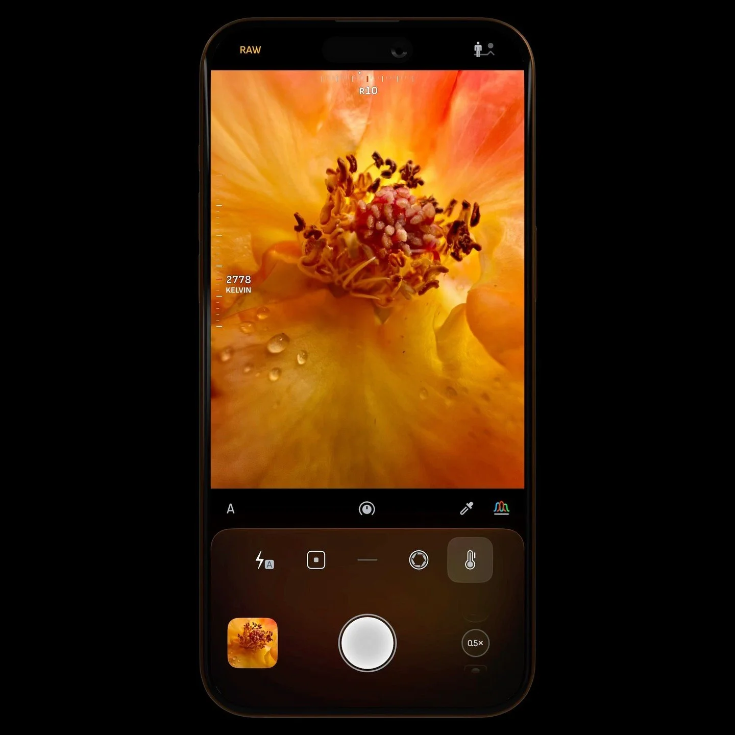 White balance is essential when capturing processed image formats. Camera M lets you smoothly change temperature and tint values. Live RGB histogram is also within reach for experts to get rid of the color casts in your captures. Manual grey card mode allows you to capture neutral color in the scene when scene lighting gets complicated.