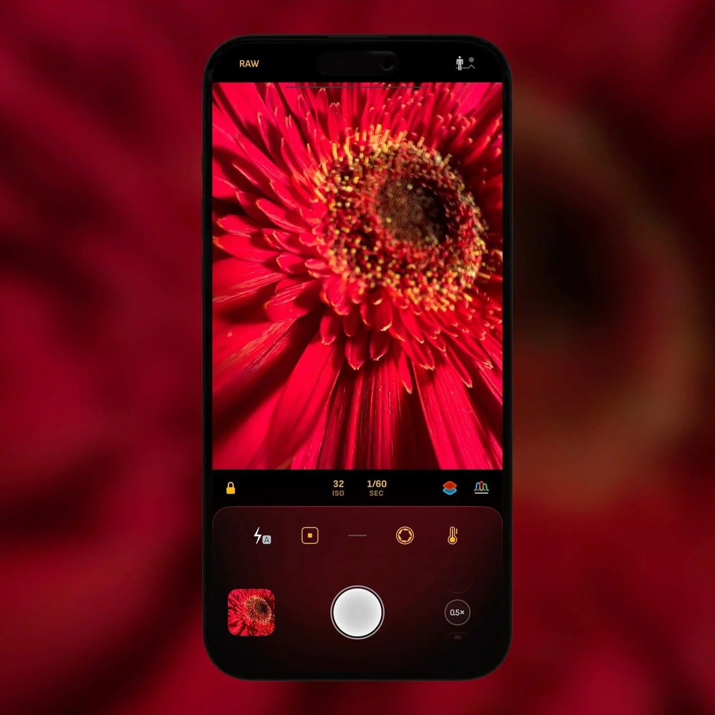 This default mode is perfect for most shooting conditions. All manual controls are available depending on the selected camera. All file formats are also available. Haptic touching within the shutter button will give a 2-second timer.